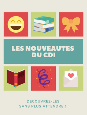 Voici les nouveautés de novembre en pièce jointe. Bonnes lectures ! Rappel : venez emprunter ou rendre des livres au CDI les lundi, mardi, jeudi, et vendredi à 12h15 (avant d'aller manger) ou à 16h05 (avant de quitter le collège pour ceux qui n'ont pas cours après). Mme Gerner